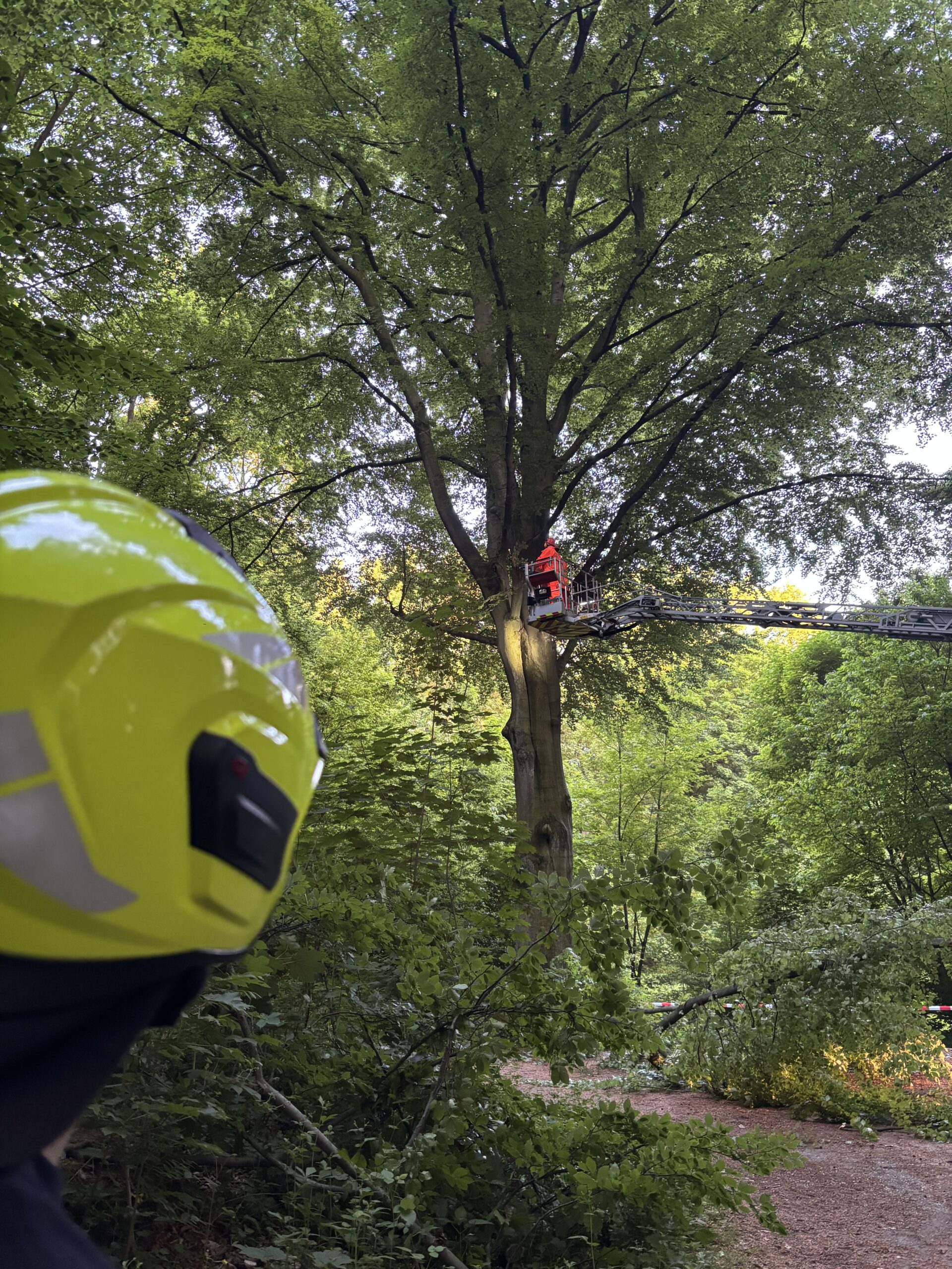 Am frühen Abend kam dann die nächste Alarmierung: Diesmal ging es in den Stadtwald nach Buer. Gemeldet war ein Ast, der von einem Baum hing. An der Einsatzstelle angekommen, musste aufgrund der Lage eine Drehleiter nachalarmiert werden. Nachdem der Ast vom Baum entfernt und der Gehweg wieder frei geräumt worden war, konnte die Einsatzstelle wieder freigegeben werden. Kurze Zeit später erfolgte dann der nächste Einsatz. In Erle steckte ein Aufzug mit mehreren Personen fest. Ein Techniker, der parallel mit dem Löschzug eintraf, öffnete den Aufzug, sodass die insgesamt 5 Personen an den Rettungsdienst übergeben werden konnten. Gegen 23:00 Uhr lautete das Einsatzstichwort erneut „Türöffnung“. Hier konnte ein Trupp über die Steckleiter auf den Balkon in die Wohnung vorgehen und die Wohnungstür anschließend von innen öffnen.