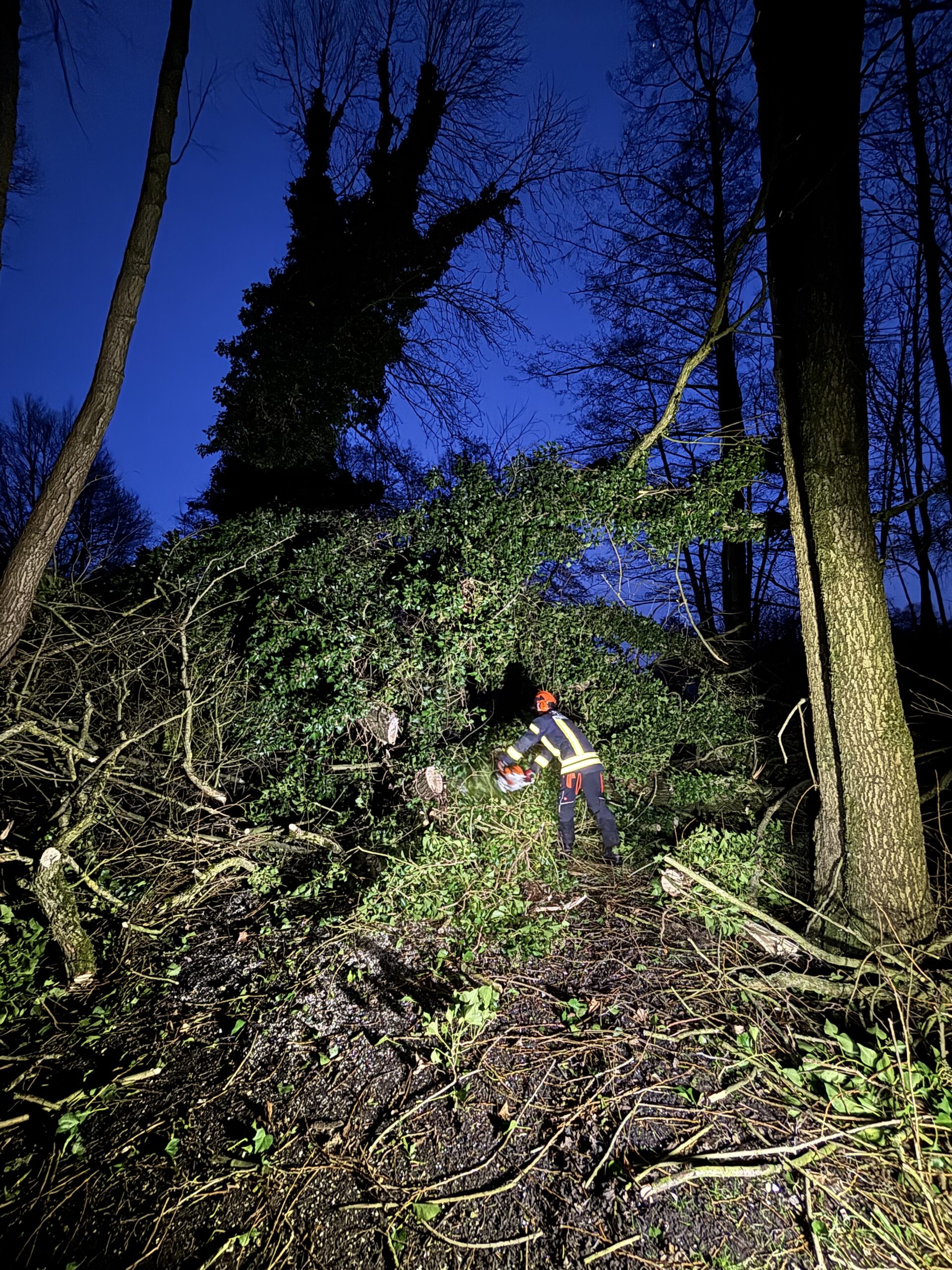 Am jetzigen Wochenende war der Löschzug für 24 Stunden einsatzbereit am Gerätehaus. Gegen 13 Uhr kam dann die erste Alarmierung. Gemeldet wurde Wasser, was in einer Wohnung im vierten Obergeschoss aus der Decke tropfte. Vor Ort stellte sich heraus, dass sich auf dem Dachboden über der betroffenen Wohnung ein rostiger Druckausgleichsbehälter der Heizungsanlage befand, aus dem das Wasser austrat. Am frühen Abend wurde der Löschzug dann erneut alarmiert. Diesmal ging es zu einem umgestürzten Baum am Resser Grenzweg. Aufgrund der Größe und der Lage des Baumes wurden zusätzliche Kräfte nachgefordert. Zur Unterstützung schickte die Leitstelle die Kollegen und Kolleginnen vom Löschzug 18 mit zwei weiteren Löschfahrzeugen. Nach gut drei Stunden war der Einsatz beendet und die Kameraden und Kameradinnen konnten zusammen wieder einrücken. Am Gerätehaus wurden die Fahrzeuge gewaschen und gemeinsam mit dem Löschzug 18 Essen bestellt. Der restliche Abend verlief sehr ruhig und alle konnten am nächsten Morgen in den wohlverdienten Feierabend.